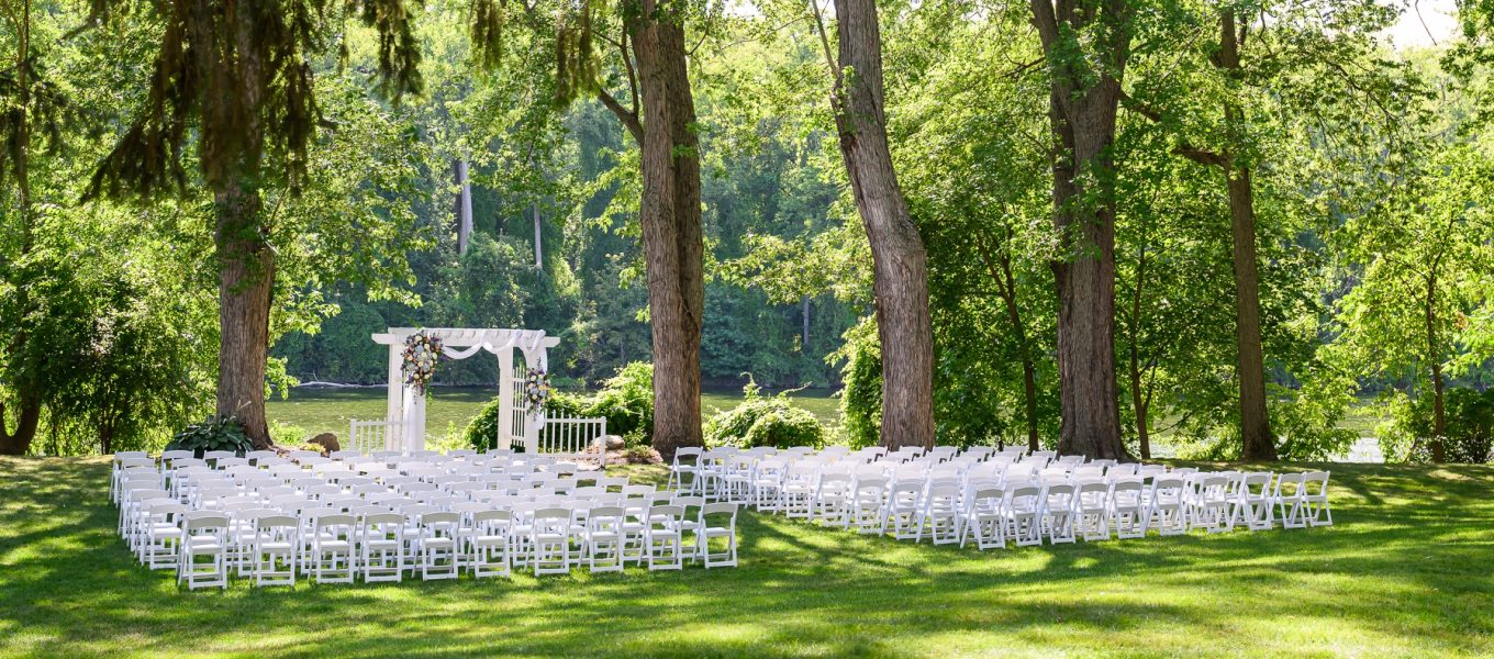 The meandering Mohawk River is a striking backdrop for wedding ceremonies and receptions. Shaded by a canopy of silver maple trees, the grounds of the Manor offer the perfect location for a romantic outdoor ceremony under the arbor, an elegant cocktail hour, and areas for guests to enjoy.
